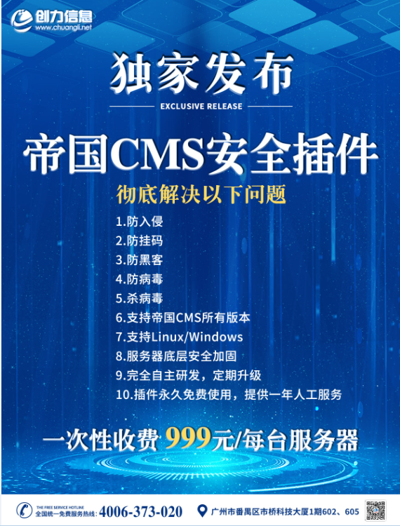 创力信息独家发布!帝国CMS安全插件,可彻底解决网站挂马、黑客入侵等问题